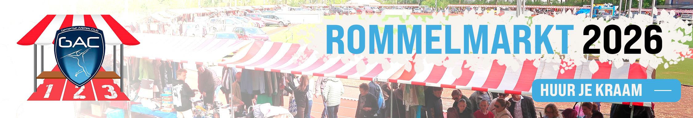 Deze rommelmarkt is een van de gezelligste uit de regio. Met een groot aantal kramen en een bezoekersaantal van ruim 2500 is dit een zeer aantrekkelijke rommelmarkt voor deelnemers en bezoekers. Als u een kraam huurt kunt u de auto achter de kraam parkeren. Zien we u op maandag 6 april op het terrein van GAC?